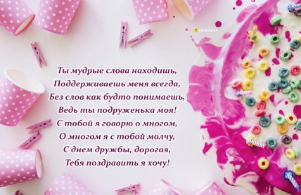 Независимо от того, как вы решите праздновать этот день, главное это внимание, искренность и теплые слова, которые останутся в сердце вашей подруги надолго. "Телеграф" собрал для вас милые картинки для поздравления близких подруг. Отправьте яркую открытку и напомните, как сильно вы цените подругу.