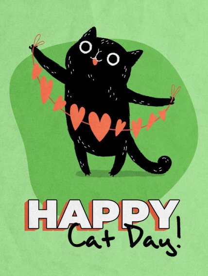 "Телеграф" собрал для вас красочные открытки, чтобы вы могли поднять настроение своим знакомым, имеющим дома черного котика или просто любящих этих животных. Отправьте милую картинку близким и сделайте им приятно в этот день.