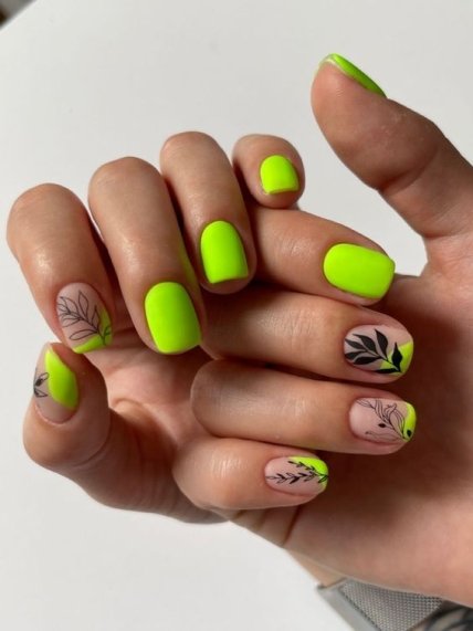 Оскільки анімалістичні принти, влітку варто додавати їх у свої манікюри. Леопардовий дизайн стане ідеальним доповненням яскраво-рожевого кольору на нігтях. Неоново-зелений колір також буде чудовим акцентом ваших літніх образів. Дизайн чорного кольору чудово його прикрасить.